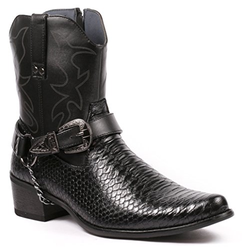 Metrocharm Diego-01 Men's Belt Buckle Chain Strap Western Cowboy Boots (10.5, Black)