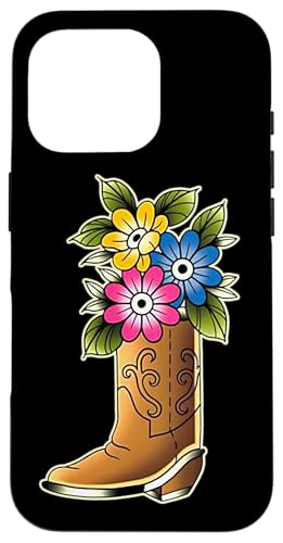 Tatouage Fleurs Bottes Cowboy Coque pour iPhone 16 Pro