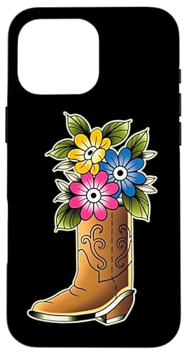 Tatouage Fleurs Bottes Cowboy Coque pour iPhone 16 Pro Max