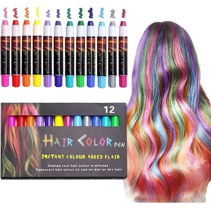 12 PCS Craie de Cheveux Colorée - DIY Crayons des Cheveux Coloration Temporaire lavable et Non Toxique