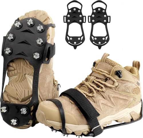 Crampon Neige pour Chaussure Trail, Crampon Chaussures Neige, Poignées à Glace pour Chaussures de Randonnée, Snow Grips avec 10 Dents pour Hiver Randonnée Pêche Marche(M:34-40)
