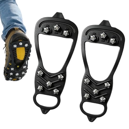 Pasbuteiy Crampon À Glace pour Chaussures | 2 Pièces 8 Agrafes Antidérapant Pointes Randonnée Hivernale | Grippers à Glace pour Chaussures et Bottes | pour Randonnée Escalade Pêche Grimper Sac À Dos