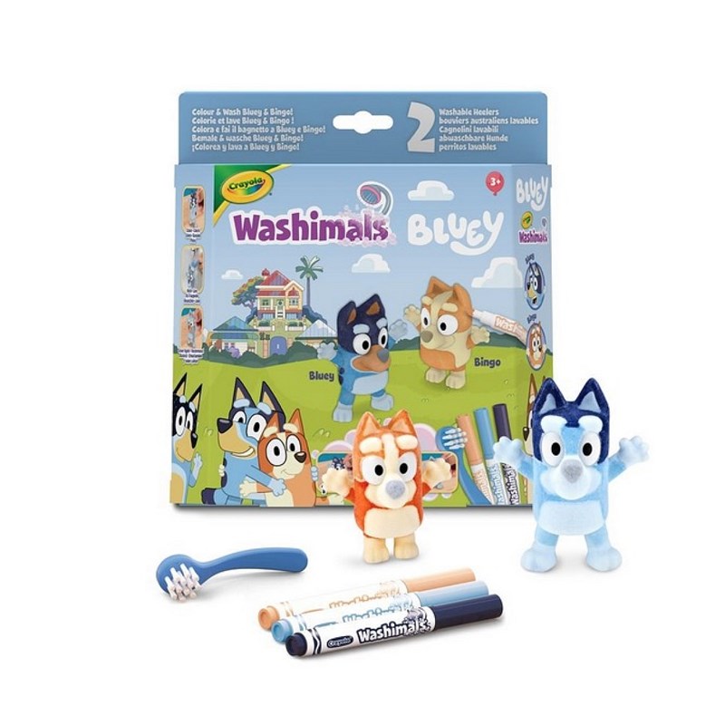 CRAYOLA Washimals Bluey – Coffret Activités avec 2 Peluches à Colorier, 3 Feutres Lavables et Brosse, Jeu et Cadeau pour Enfants dès 3 Ans