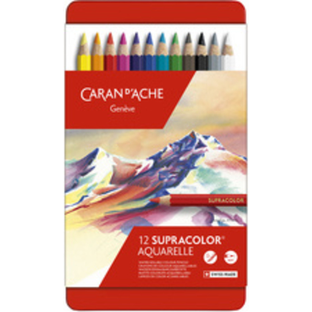 Caran d'Ache Swisscolor fargeblyanter - 12 farger i metallskrin