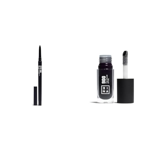 3INA MAKEUP - The Automatic Lip Pencil 900 + The Color Lip Oil 900 - Crayon a Lèvres Noir Matte Longue Tenue Waterproof + Baume à Lévre avec Acide Hyaluronique - Vegan - Cruelty Free