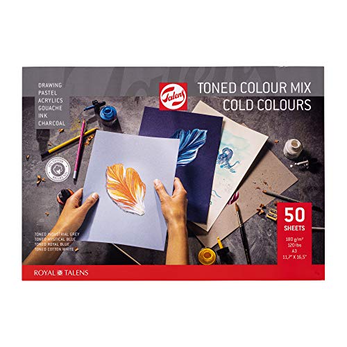 Talens Paper - Bloc de papier ton sur ton mélange de couleurs froides A3 42x29.7cm - 180g 50 feuilles - Haute qualité 15% coton 20% recyclé - Pour crayons Pastels Gouache Encres Acryliques Fusain