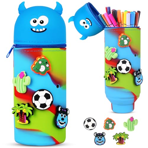 Vicloon Trousse Scolaire, Trousse Ecole 2 en 1 en Silicone Souple, Trousse à Crayons en Silicone Souple Rétractable, Trousse à Crayons Télescopique Kawaii pour Garçons Filles Etudiants