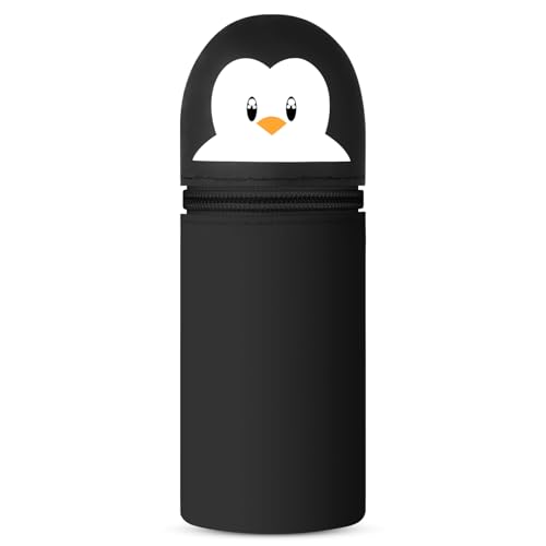 DEZP 1 Pièce Kawaii Étui École 2 en 1 en Silicone Souple, 18.5 * 6.5 Cm Porte-Stylos De Table, Thème Animaux Trousse pour Legami Stylo Fermeture À Glissière, Crayons Crayons Stylos (Manchot)