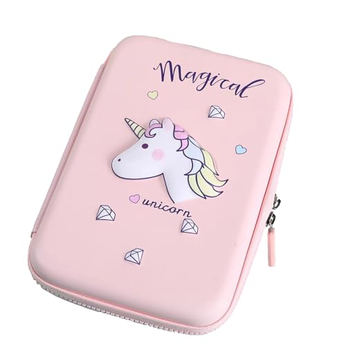 Yeahbo Trousse Scolaire Fille Kawaii, Trousse Licorne 6 Autocollants Licorne, Trousse à Crayons 3 Compartiments, Etuis à Crayons Porte-Stylo, Trousse de Bureau Portable, Filles Enfants École (Rose)