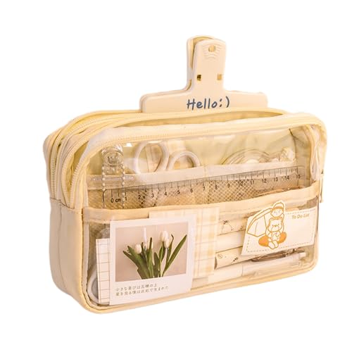 irLocy Trousse à Crayons esthétique, Trousse à Crayons esthétique, Papeterie, Kawaii, Jolie Trousse Transparente, Beige, Pochette