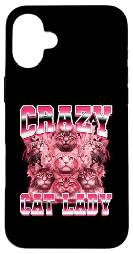 Crazy Cat Lady Funny Style années 90 Coque pour iPhone 16 Plus
