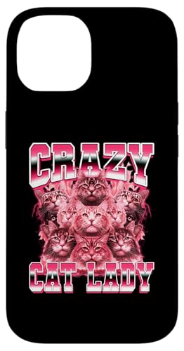 Crazy Cat Lady Funny Style années 90 Coque pour iPhone 14