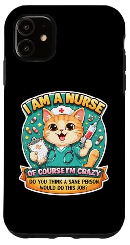 I Am A Nurse of Course I'm Crazy Funny Nursing Cat Blague Fun Coque pour iPhone 11