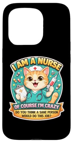 I Am A Nurse of Course I'm Crazy Funny Nursing Cat Blague Fun Coque pour iPhone 15 Pro