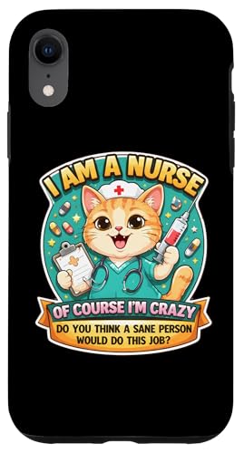 I Am A Nurse of Course I'm Crazy Funny Nursing Cat Blague Fun Coque pour iPhone XR