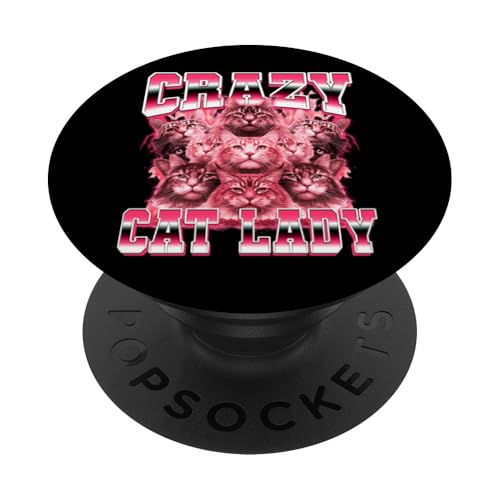 Crazy Cat Lady Funny Style années 90 PopSockets PopGrip Adhésif