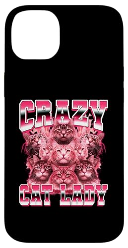 Crazy Cat Lady Funny Style années 90 Coque pour iPhone 14 Plus