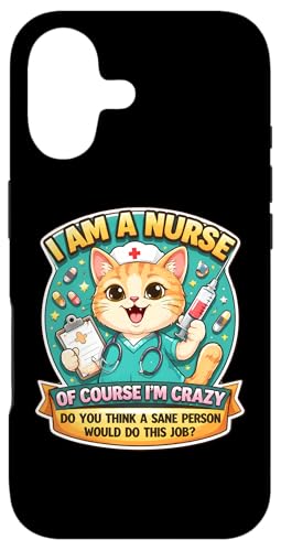 I Am A Nurse of Course I'm Crazy Funny Nursing Cat Blague Fun Coque pour iPhone 16