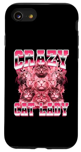 Crazy Cat Lady Funny Style années 90 Coque pour iPhone SE (2020) / 7/8
