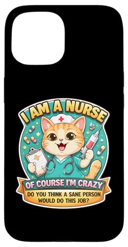 I Am A Nurse of Course I'm Crazy Funny Nursing Cat Blague Fun Coque pour iPhone 15