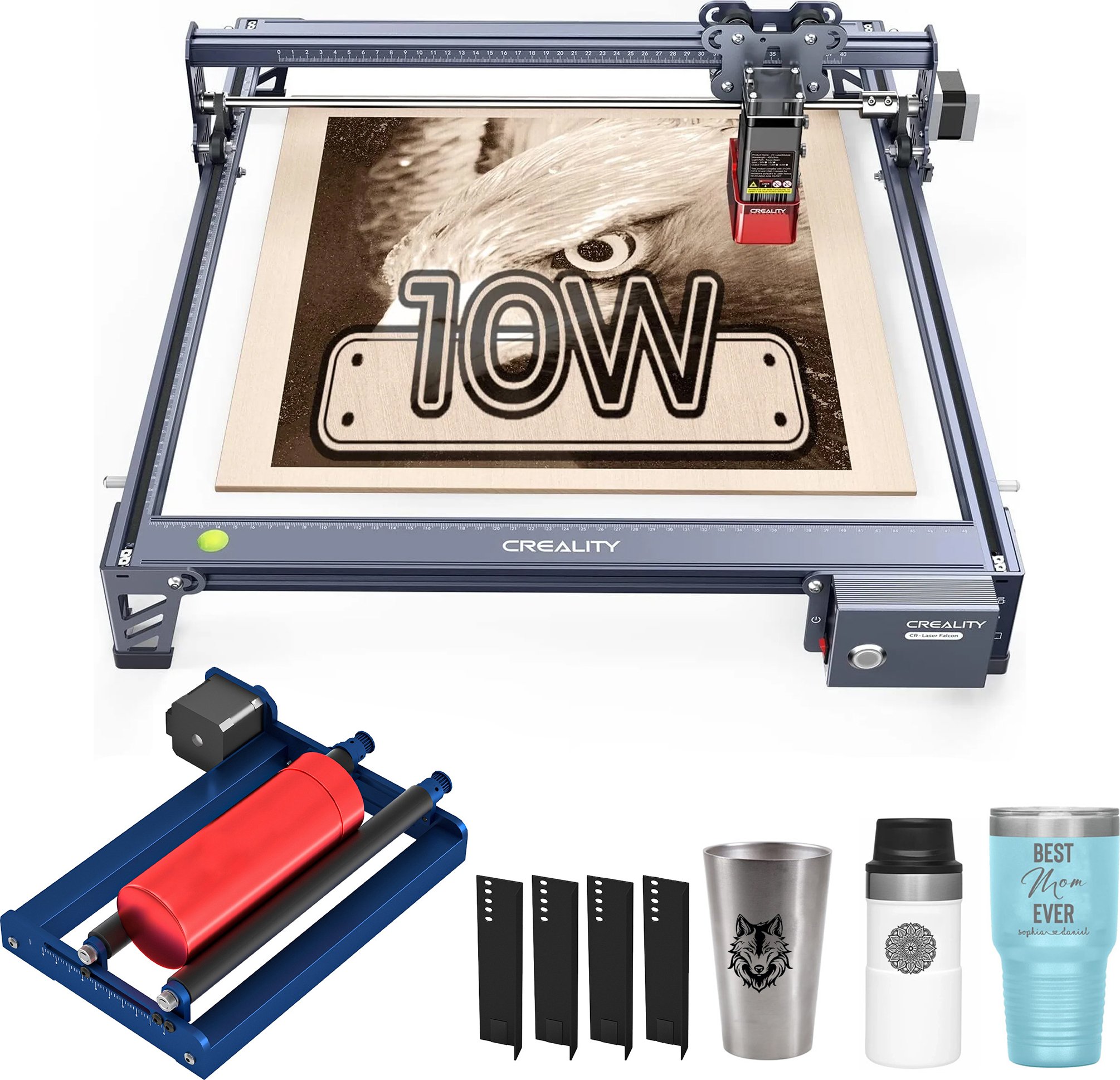 Creality Falcon 10W Machine à graver Laesr avec rouleau rotatif, machine à graver Laesrgravure DIY pour les objets cylindriques en cuir de bois