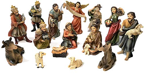 Faithful Treasure Crèche de Noël 15 pièces - Figurines peintes à la Main pour crèche de Noël - 10,2 cm de Haut
