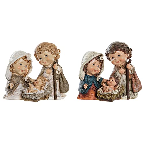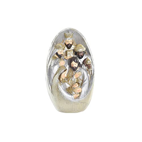 DKD Home Decor Crèche de Noël de la Marque, Couleur dorée et argentée, en résine et Paillettes (11,5 x 10,5 x 19 cm)