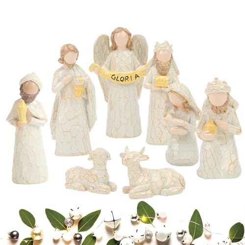 Murman Ensembles De Figurines De Nativité en Résine, Traditionnelle Noël Crèche Scène avec Personnages, Noel Figurines Jésus Statue pour Décoration D'Intérieur Cadeau Noël