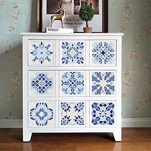 Carrelage Adhesif Mural Blanc Bleu Méditerranéen Stickers Carrelage PVC Étanche credence Adhesive pour Cuisine Splashback Tile Stickers Muraux Carrelage Adhesif Mural Salle de Bain Tile 10x10cm