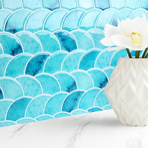 WALPLUS Credence Adhesive pour Cuisine Carrelage Adhesif Mural Salle de Bain Carreaux Adhesif Résistant à la Chaleur Bleu Turquoise Méditerranée 24pcs 15cm(6")