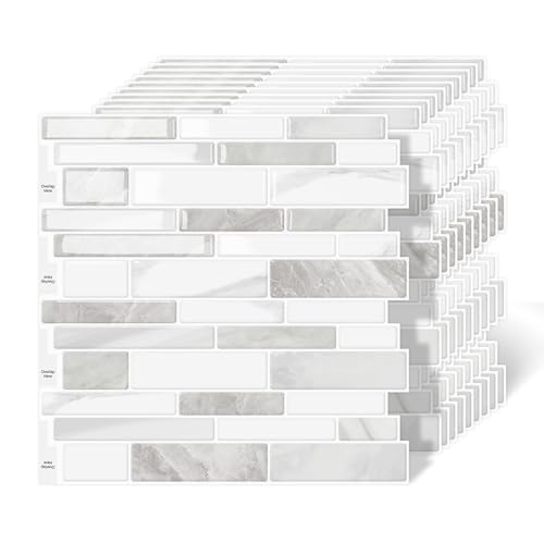 Credence Adhesive pour Cuisine,Adhesif Mural Salle de Bain,Carrelage Autocollant,Beige Blanc Papier Adhesif en Vinyle 3d Brique(10-Pièces,30.5x 30.5cm)