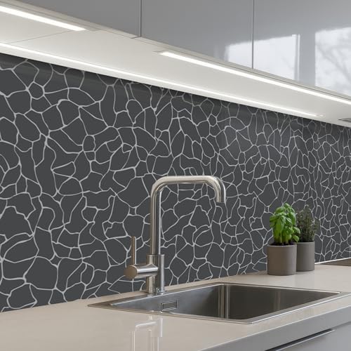 KitchenYeah© Credence Cuisine 80x300 cm Adhesif Protection Mur Plaque De Cuisson Plastique Rigide Revetement Murale À Coller Design - Géométrie - Noir