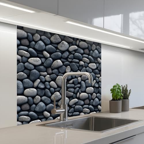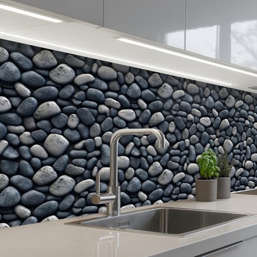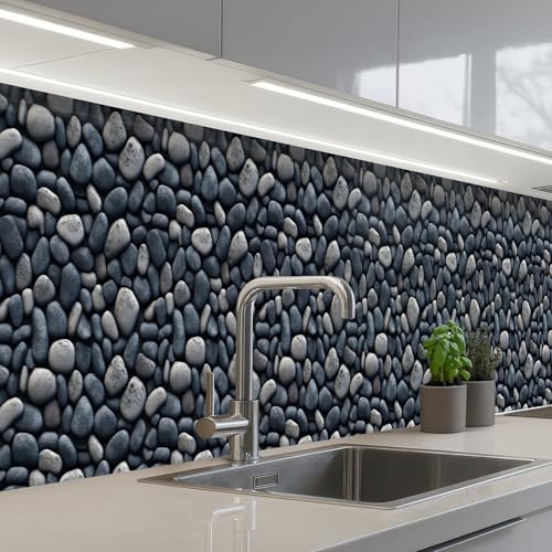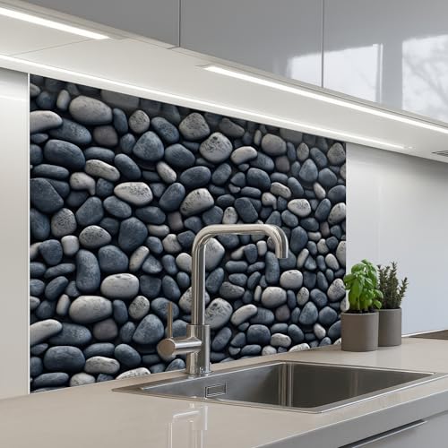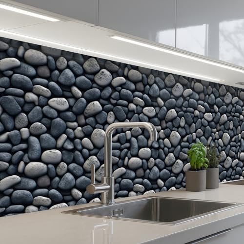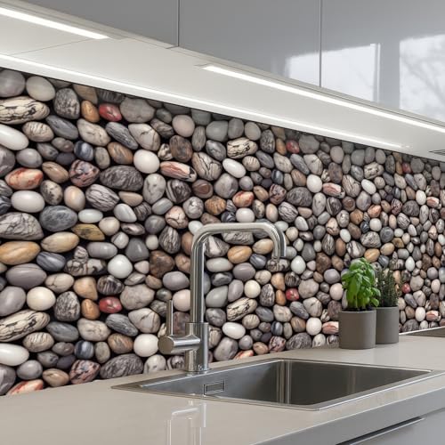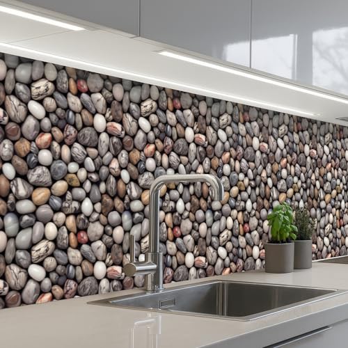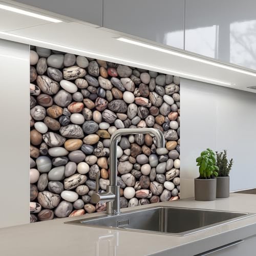 KitchenYeah© Credence Cuisine 80x250 cm Adhesif Protection Mur Plaque De Cuisson Plastique Rigide Revetement Murale À Coller Marbre - Couleurs - Galets