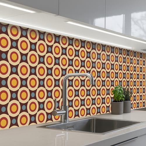 KitchenYeah© Credence Cuisine 60x300 cm Adhesif Protection Mur Plaque De Cuisson Plastique Rigide Revetement Murale À Coller Rétro - Vintage - Design - Cercle
