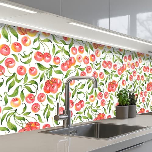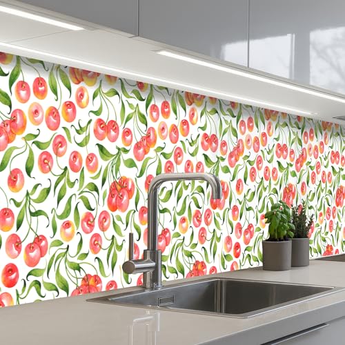 KitchenYeah© Credence Cuisine 80x300 cm Adhesif Protection Mur Plaque De Cuisson Plastique Rigide Revetement Murale À Coller Motif - Cerisier - Blanc