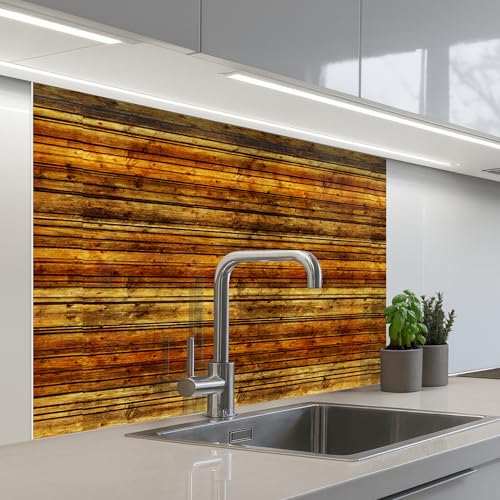 KitchenYeah© Credence Cuisine 60x100 cm Adhesif Protection Mur Plaque De Cuisson Plastique Rigide Revetement Murale À Coller Vintage - Bois - Étagères
