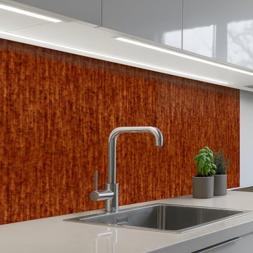 KitchenYeah© Credence Cuisine 60x250 cm Adhesif Protection Mur Plaque De Cuisson Plastique Rigide Revetement Murale À Coller Rouge - Marron - Métal - Rouille