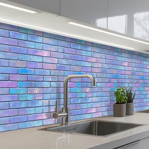 KitchenYeah© Credence Cuisine 60x200 cm Adhesif Protection Mur Plaque De Cuisson Plastique Rigide Revetement Murale À Coller Violet - Bleu
