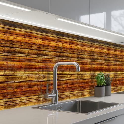 KitchenYeah© Credence Cuisine 80x500 cm Adhesif Protection Mur Plaque De Cuisson Plastique Rigide Revetement Murale À Coller Vintage - Bois - Étagères