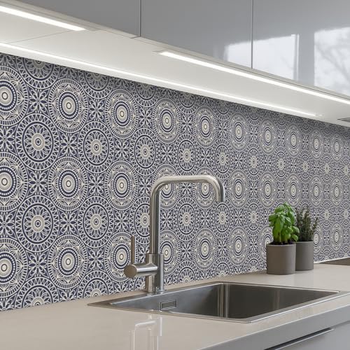 KitchenYeah© Credence Cuisine 80x500 cm Adhesif Protection Mur Plaque De Cuisson Plastique Rigide Revetement Murale À Coller Mandala - Bleu - Motif - Abstrait
