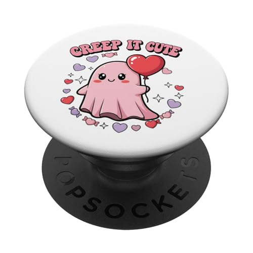 Creep It Cute Kawaii Fantôme Drôle Halloween Saint-Valentin PopSockets PopGrip Adhésif