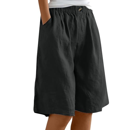 Générique Shorty Femme, Shorty Anti Frottement Cuisse Femme Longueur Genou Jambe Baggy Confortable Coton Élastiqué Décontracté Taille Haute Stretch Dames Culottes Été Solide Short avec Poches Shorts