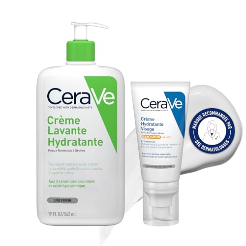CeraVe - Routine Protectrice - Crème Lavante Hydratante 562 ml + Crème Hydratante Visage SPF30 52 ml - Hydrate & Préserve la Barrière Cutanée - Aux 3 Céramides Essentiels - Peau Normale à Très Sèche