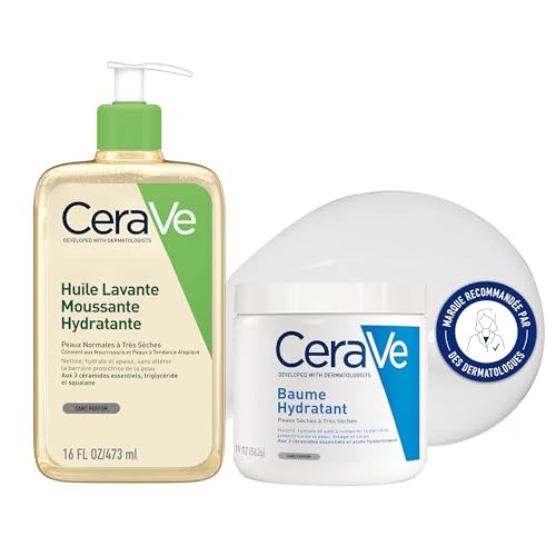 Lot de CeraVe Soins Corps Baume Hydratant 562ml | Crème Hydratante Corps, Visage à l'Acide Hyaluronique + CeraVe Huile de Douche Lavante à l'Acide Hyaluronique pour Peaux Normales à Très Sèches 473 ml