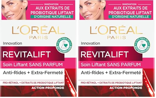 L'Oréal Paris - Crème de Jour Anti-Âge - Soin Jour Anti-Rides & Extra-Fermeté - Aux Extraits de Probiotique Liftant Naturel - Sans Parfum - Tous Types de Peaux - Revitalift - 50 ml (Lot de 2)