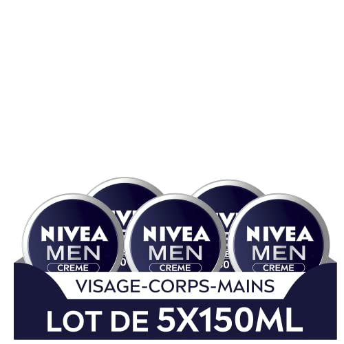 NIVEA MEN Crème hydratante 3-en-1 (lot de 5 x 150 ml), Crème visage, corps et mains nourrissante pour homme, Soin hydratant enrichi en Vitamine E et Glycérine