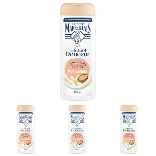 Le Petit Marseillais - Soin Douche Surgras Huile d'Argan & Fleur d'Oranger - Le Rituel Douceur (flacon de 400ml) - Crème de Douche nutrition intense (Lot de 4)