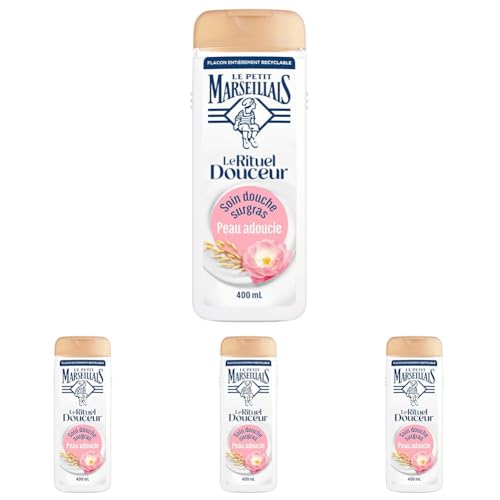 Le Petit Marseillais - Soin Douche Surgras Parfum Lait d’Avoine & Rose - Le Rituel Douceur (flacon de 400ml) - Crème de Douche nutrition intense (Lot de 4)