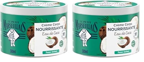 Le Petit Marseillais | Crème Corps Nourrissante Eau de Coco (pot de 380 ml) – Crème hydratante pour peaux sèches – Formule vegan 95% d'origine naturelle (Lot de 2)