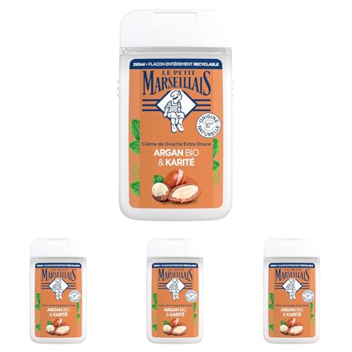 Le Petit Marseillais | Crème de Douche Extra Douce Argan Bio & Karité (flacon de 250 ml) – 92% d'ingrédients d'origine naturelle – Flacon entièrement recyclable (Lot de 4)